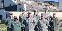 8 members of the Tyndall Legal Office standing in front of Hangar 5 after Hurricane Michael